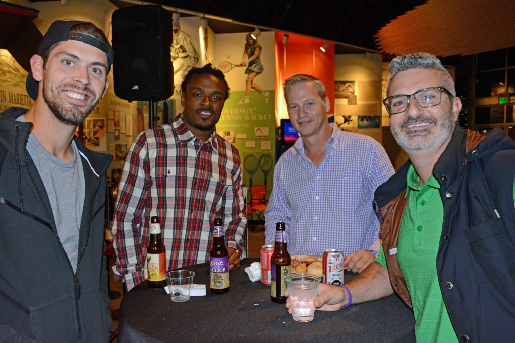 Pictured (LtoR) Justin Tucker, Baltimore Ravens kicker; Brandon Carr, Baltimore Ravens cornerback; Jim Walters, Bel Air-based CPW; and Glenn Younes, Ed Reed Foundation director