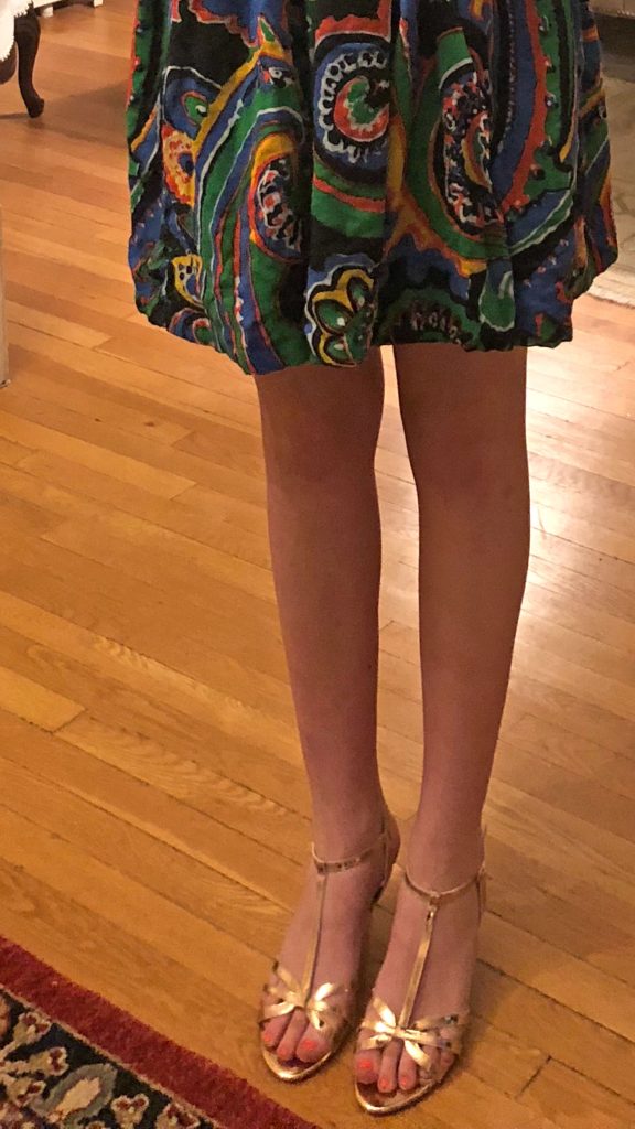 Rhys also paired her dress with Seychelles vegan metallic low heels, so appropriate for the look and her years. What I love about this is she’s not trying to look older than she is. But at the same time, I take her seriously because her style choices seem so mature.