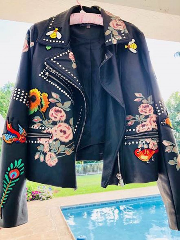 Let’s face it…this jacket is COOL. If I saw this thing on the rack at a store I wouldn’t hesitate to try it on… and if I ran into Bianca on the street, I would definitely stop to ask her where she got it. It’s so fun, with plenty to look at and tons of personality. I would describe it as a conversation piece. And most people might even wonder if she added the patches herself. It looks super high-end, and is still youthful and fun. And Bianca did a great job pairing it with ripped jeans to add a little more rocker-California vibes to her look.