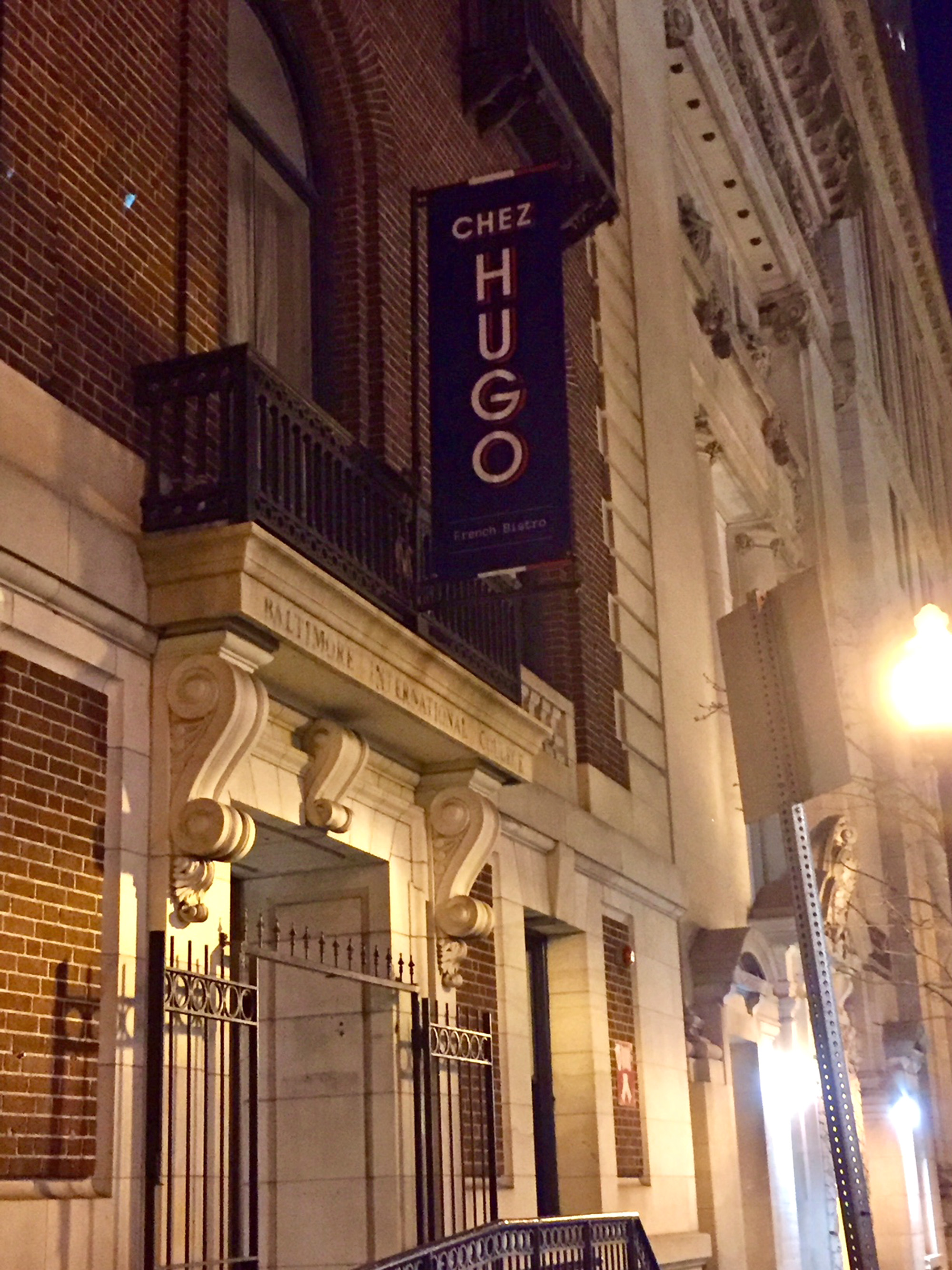 Today, that grand space on Redwood street has the Shakespeare Theatre in the grandiose old Redwood Trust Building next door and the chic, hip, Hotel RL across the street. And Chef Steve Monnier, hot off his well-reviewed French bistro, Aromes, in Hampden, has opened Chez Hugo.