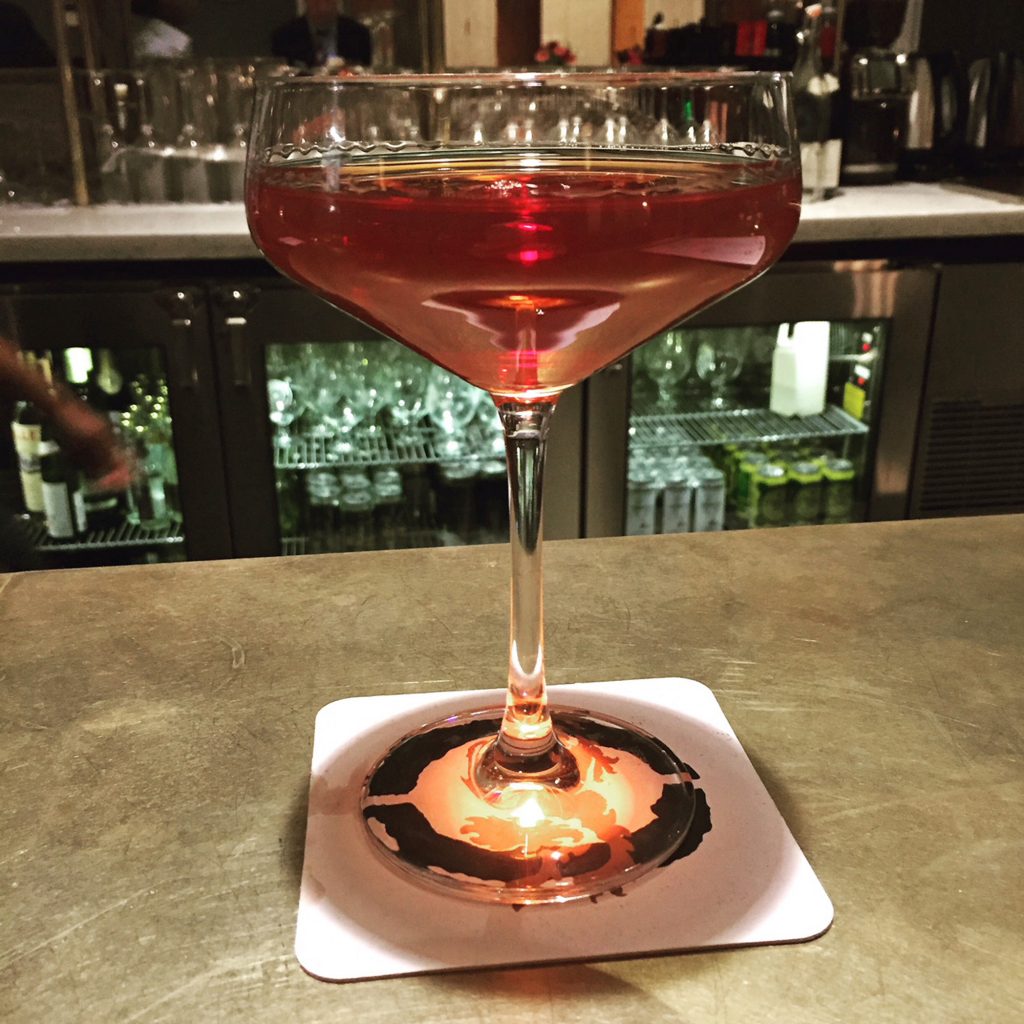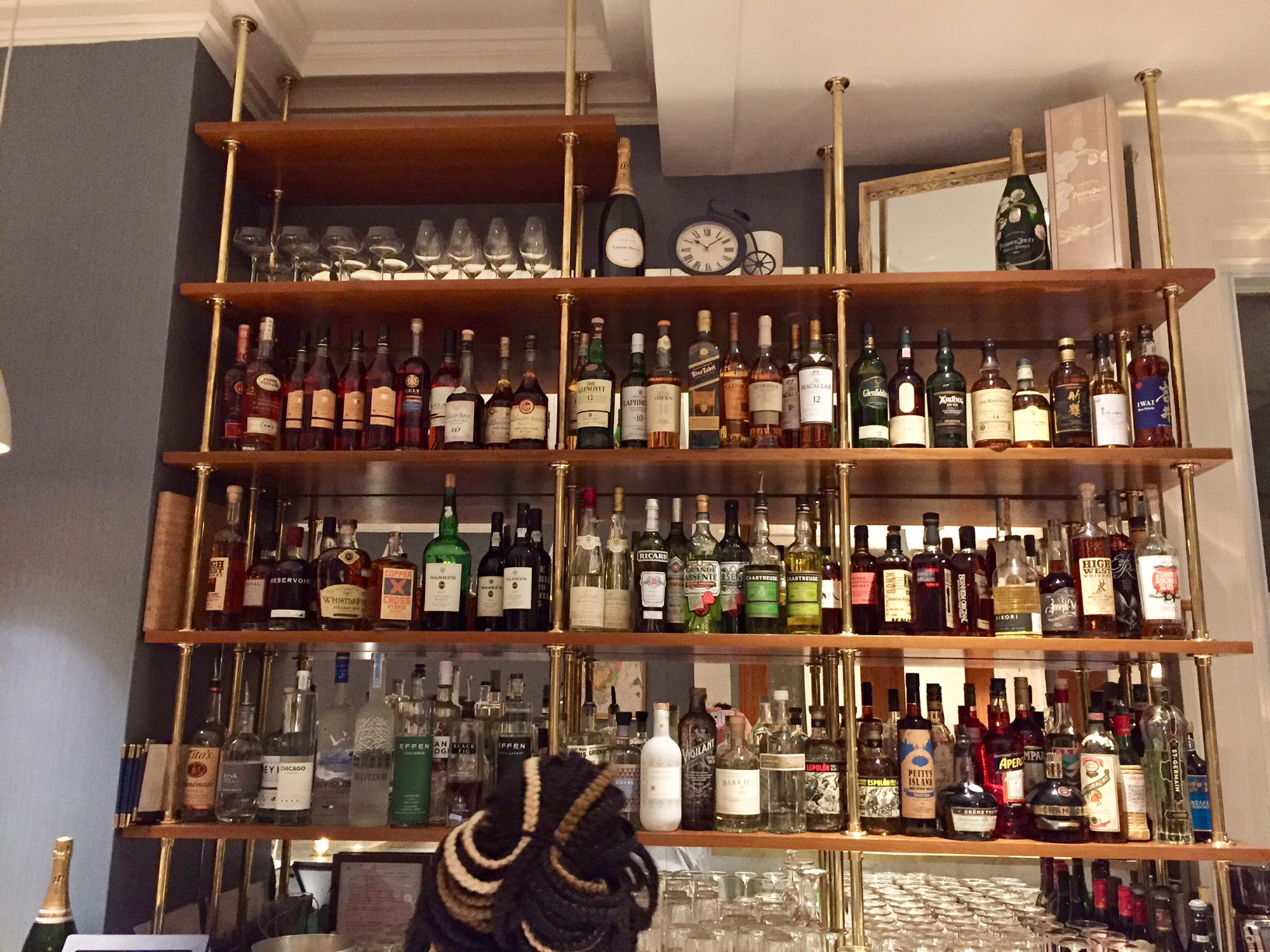 The barroom is a social space – including some high-top tables in the room for socializing – with a well-stocked collection of classic elixirs on display.