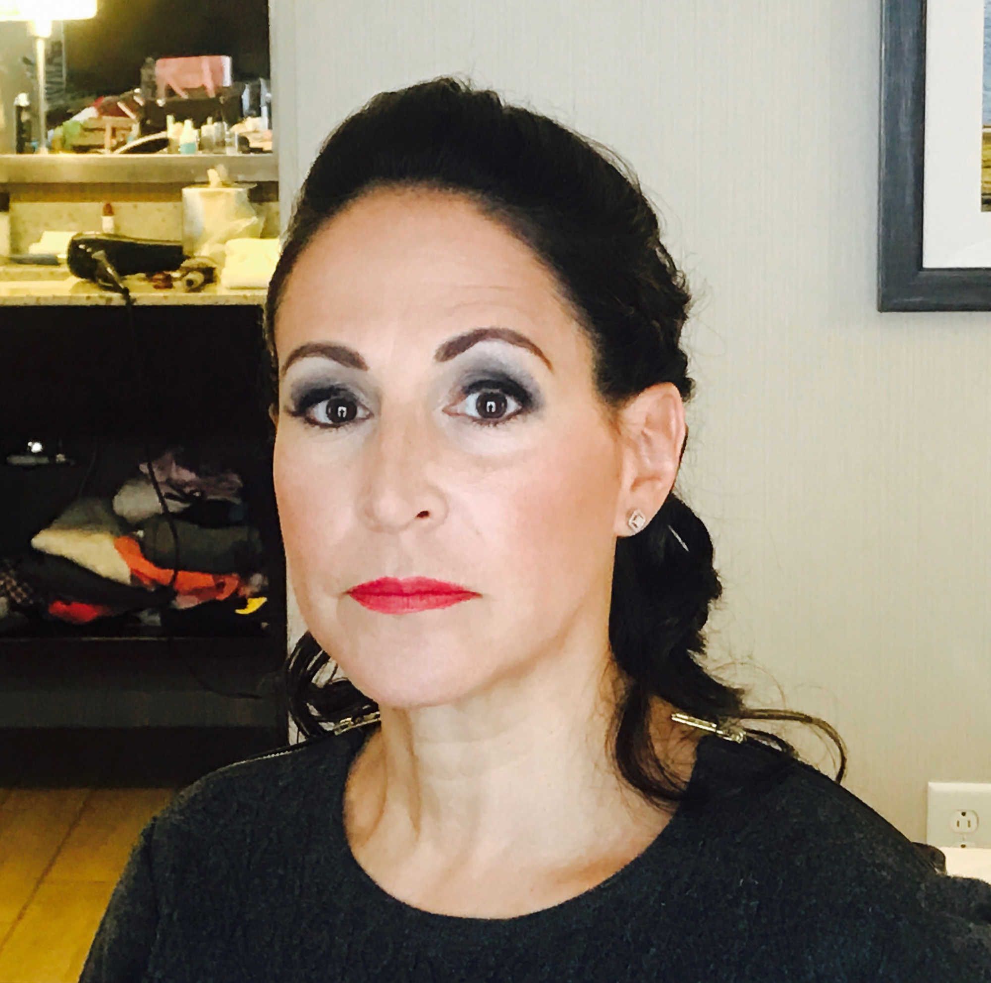 Remember my Maleficent joke? Well, Rachel’s Aunt Jill “swooped” in from New York and Paris, with a request to look like an age-appropriate – and flattering – Maleficent. Although her feathered headdress and cloak would come later, we first had to tackle her makeup. It’s always a fine line between making someone a caricature or just giving a nod to a theme, especially on a former Parisian, hon! We went for strong matte red lips, a lot of contouring, and a little leftover glitter that I dampened before applying. We just chose to do deep smoky eyes and overdraw the brows a bit. Not so different from some of those Instagram tutorial gals you see out there! And something to keep in mind when you’re wondering if less is more.