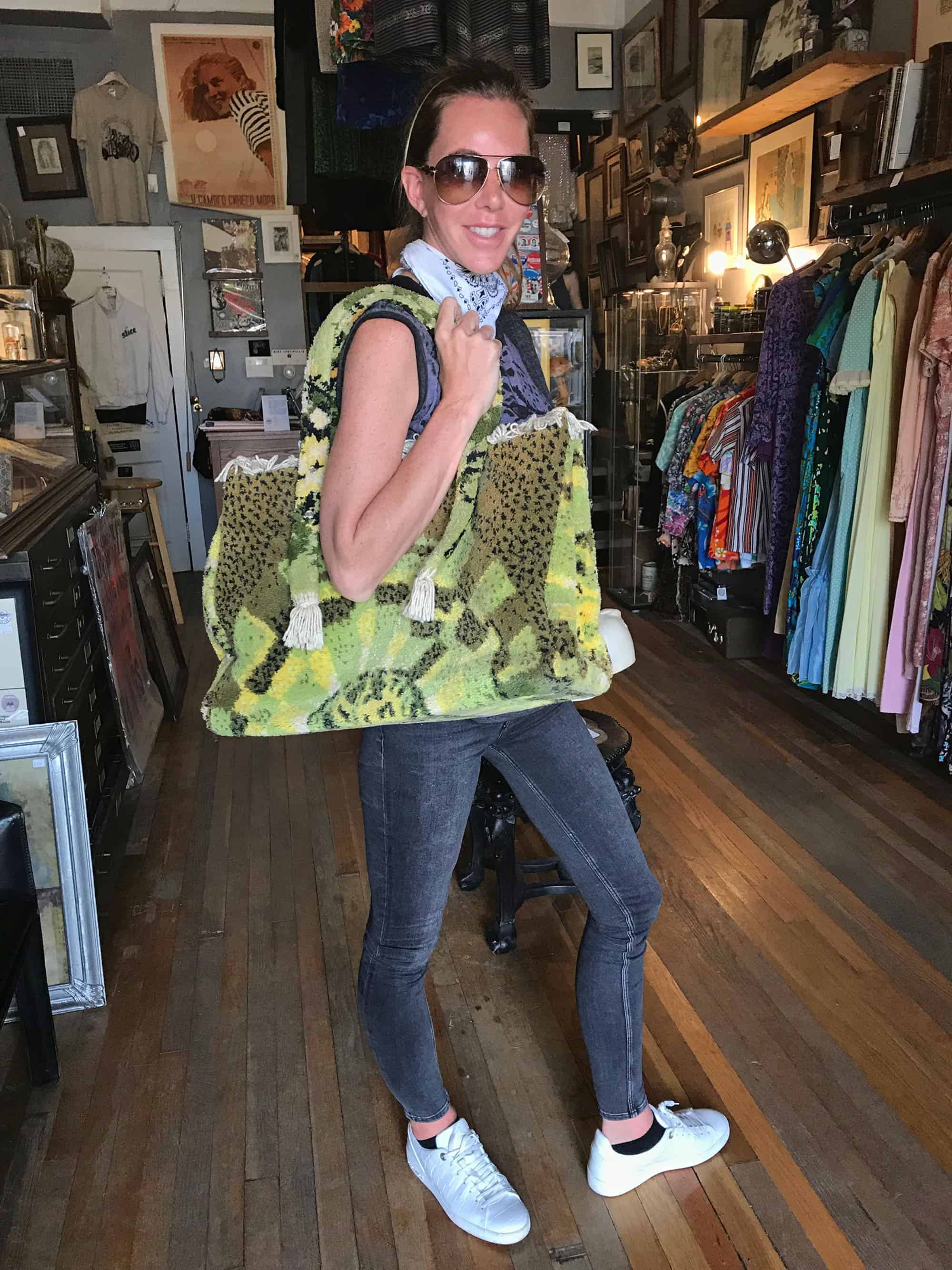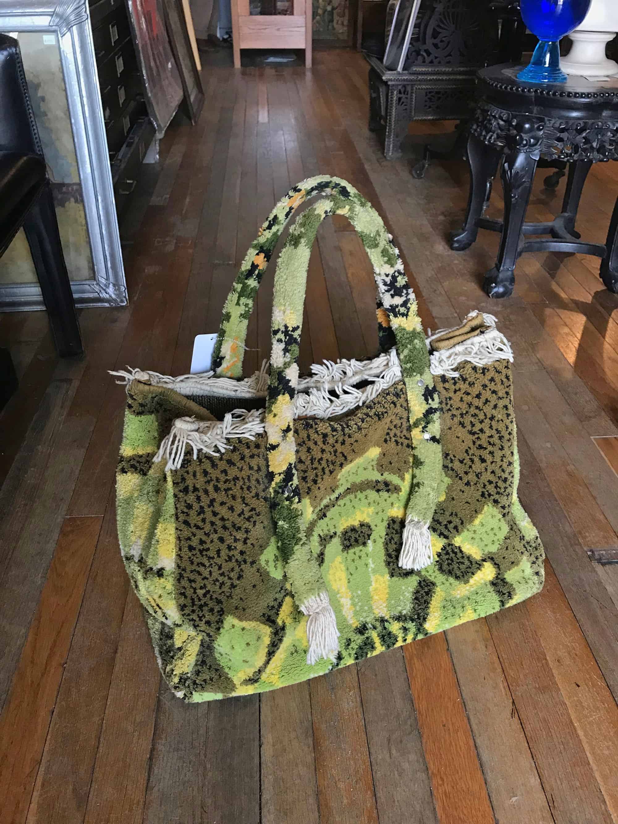 FOUND: As always, I can’t go more than a week without stopping into at least one of my favorite Baltimore vintage shops. This week I stopped into Milk & Ice Vintage in Hampden on The Avenue. While I was in there, I saw this super interesting patterned, light green rug bag in the window. I LOVE the cheetah print that is mixed into the print. Take a look!