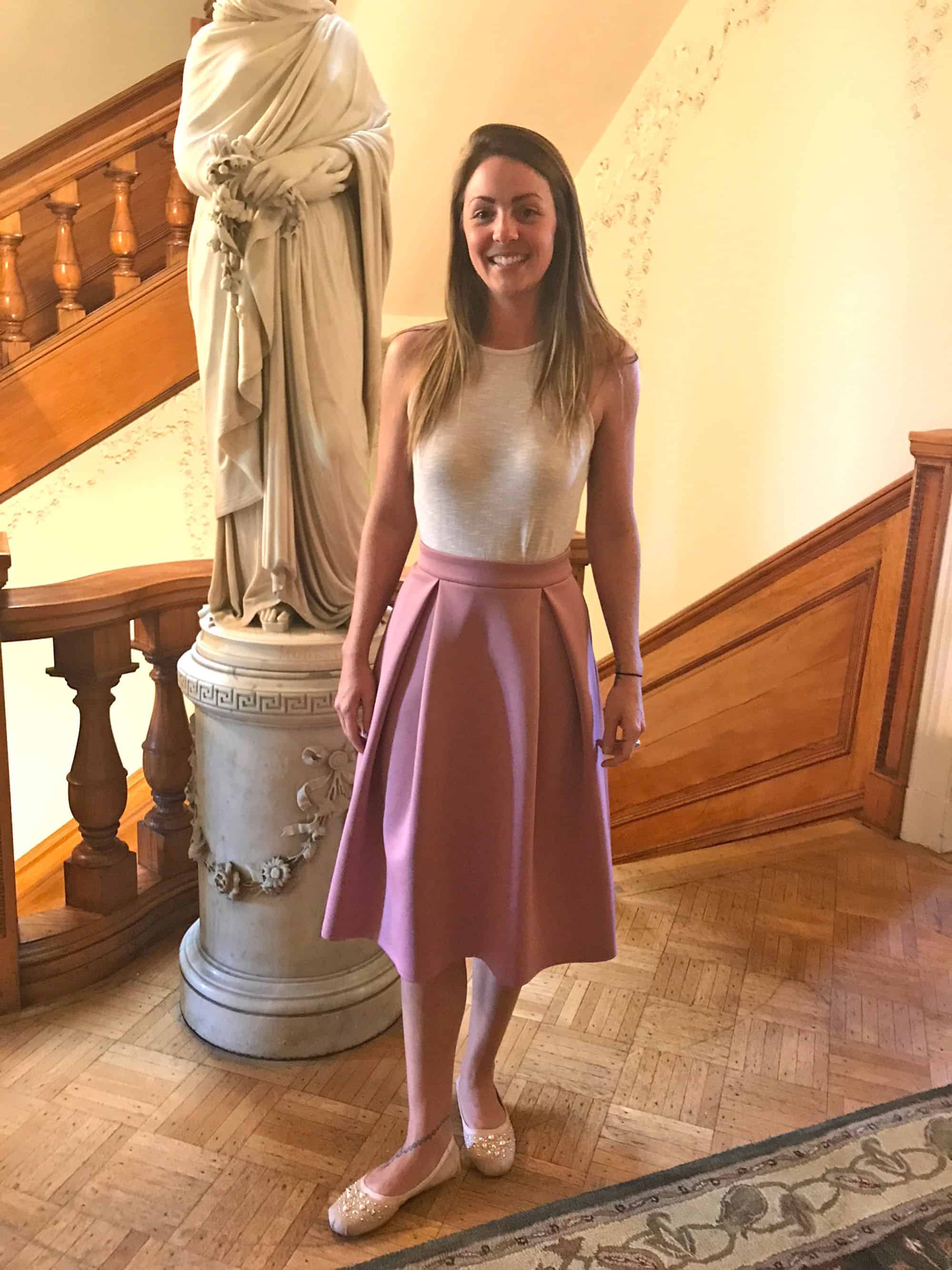 Another gal who is ready for spring time! Alisha’s spring time look couldn’t be cuter. Her pastel pink pleated skirt from ASOS is so darling, and perfect for the season. She’s flawlessly balanced this skirt with a nice light and breezy tank from Mossimo by Target, making the overall look feel more casual and buoyant. This outfit works well for the office or for a lunch date with friends or family.