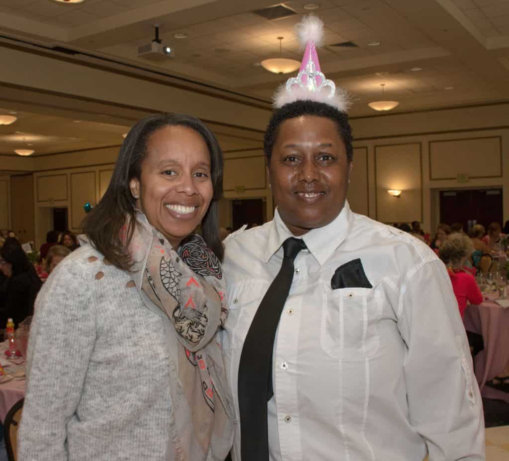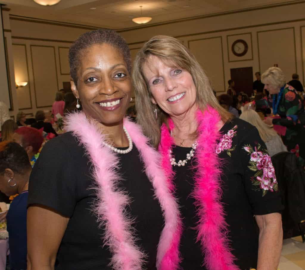 Pictured (LtoR) Maria McCarthy, University of Maryland St. Joseph Medical Center pharmacist; and Monica Bradley, community volunteer (in a dress she got at Goodwill to wear to the event last year, too)