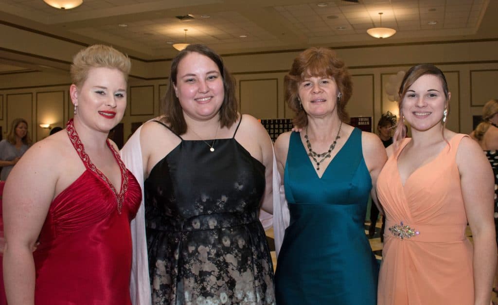 Pictured (LtoR) Ladies who know how to shop for the occasion: they all got their gowns for this party at Goodwill (except Rachel, who nabbed hers at Macy’s). Pictured (LtoR) Anna Hohl, Carrolltown Veterinary Clinic vet tech; Rachel Wandishin, Pearson Online & Blended Learning operations support specialist; Sherry Hohl, Montgomery County Fire & Rescue captain; and Elise Hohl, Eldersburg Dental Group dental assistant