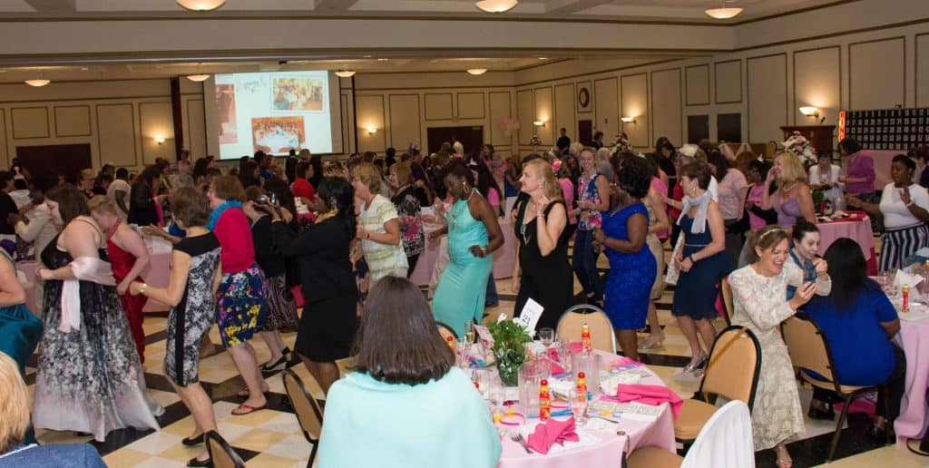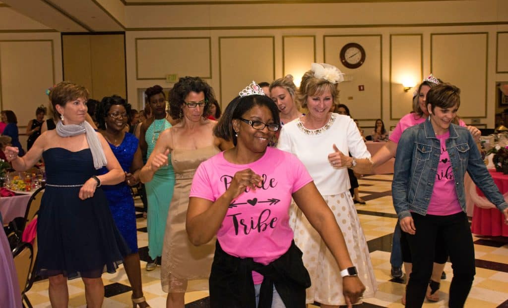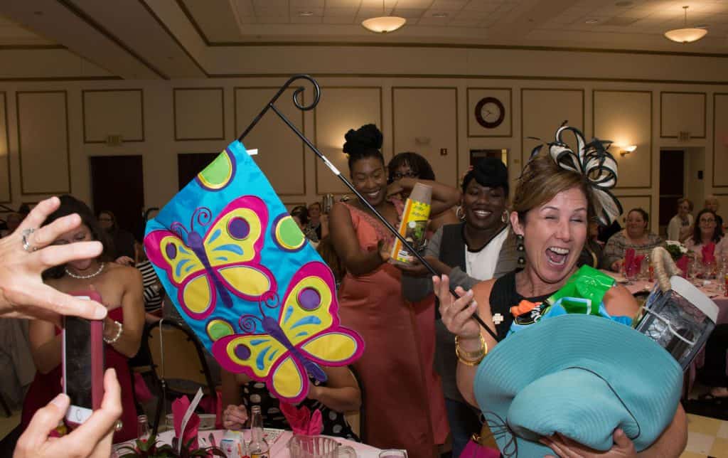 Pictured (LtoR) Leah Gutermuth, BHS program manager (wearing her bridesmaid dress from her cousin’s 2016 wedding); Chris Swift, retired Johns Hopkins University manager (“I’m mother of the bride!”); and Kim Margiotta, The Travelers regional sales director (in a dress she wore to a recent wedding)