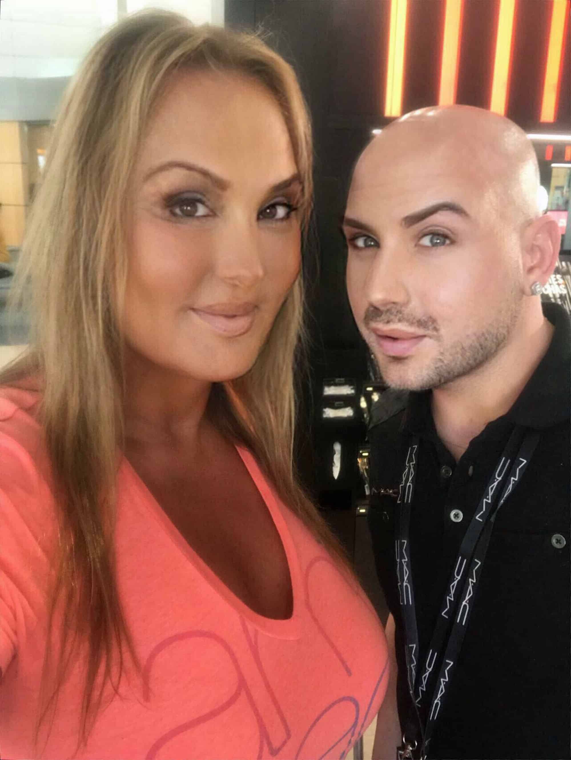 After Ron’s stories of concert tours through Asia, I was off to BWI airport feeling wanderlust. I didn’t have to wander long to find the new MAC Cosmetics store there, where manager Gavin Hebert was touching up traveling entertainer Jennifer Warner with their new summer nude look and buffing brush. Then, he treated himself to a touchup with a little N4 Studio fix and Saddle brow powder for the pics.