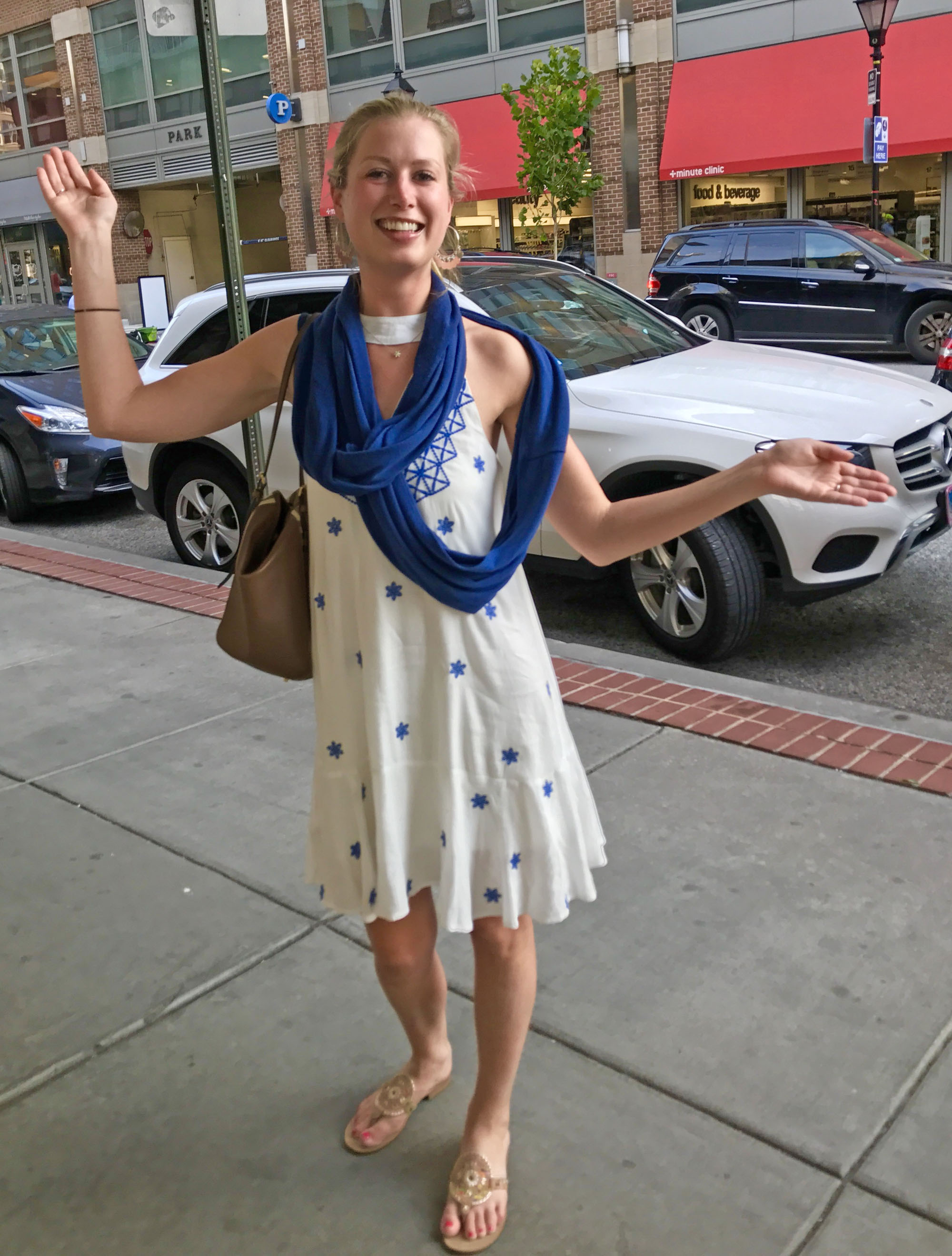 “Summertime and the living is easy.” This season brings several lyrics to mind. Everyone seems to slow it down a notch. Casual Fridays stream into other days of the week. Casual/comfortable being the optimal words as temperatures soar, allowing fashion to give freedom to sun-kissed arms and legs. Peekaboo sundresses give erotic touches to nubile bodies. White – always a prime color choice for hot weather – gets splashed with bold hues or etched in blue and red, and highlighted with pearls. Straw hats are a definite accompaniment to ward off the sun’s rays, as folks relax at Baltimore’s Sandlot or at one of the many bustling outdoor cafes. One would think we’re in the south of France, especially as ebullient waiters bring fruity libations to thirsty revelers. The heat might be here, but it does little to dampen fashion spirits.