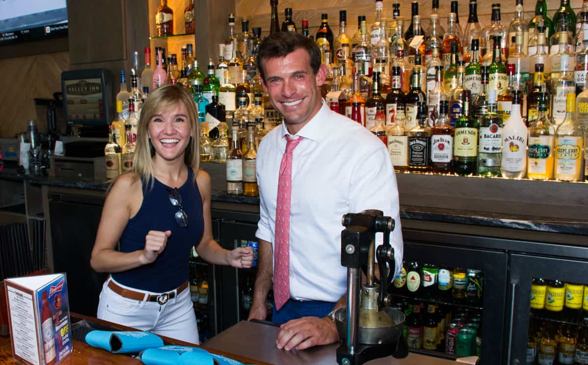 Pictured (LtoR) Guest bartenders: Dani Rush, Belrush Realty president/realtor; and Justin Batoff, Old Line Society co-founder