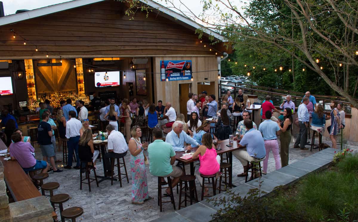 Folks gathered at the outside bar to mix and mingle and raise money for OLS and the various charities it supports.