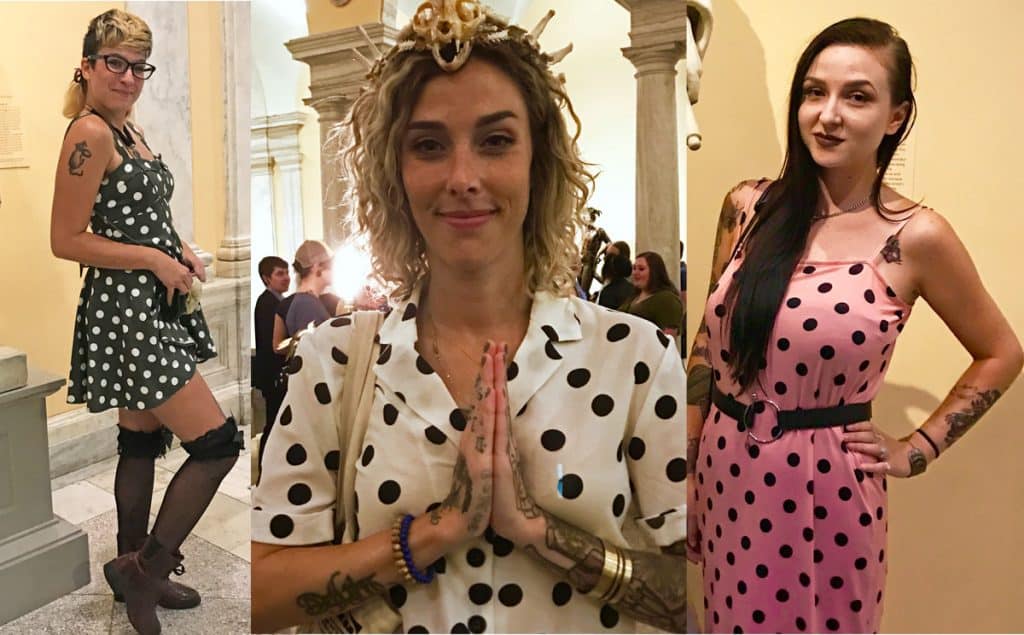 My mental calendar is locked to coincide with the new school semester. New beginnings. Energies are reignited from summer’s lethargies. Succulent Honey Crisp apples – tart and sweet – seem to meme the crispness in the air. And pumpkins are everywhere. Time to put away the Orioles jerseys (repressing our sad season) and dust off those Raven’s sweats (hoping for happier results). The crash-and-dash films of summer have ended and more serious films emerge. Museums host new events.  Quirky taxidermy at the Walters, and several events at the BMA seemed to stoke our Baltimore fashionistas. While on the streets, flip flops were banished for boots and stilettos, ornamental ear embellishments sparked trending ear statements, and the fall hues of orange, gold and beige and browns appeared to reflect in much of street fashion. However, a fairly warm Indian summer provoked some summer-to-fall crossovers. Bright yellow jump suits and earthy toned overalls were made modern by midriff baring crop tops.   And because it was 89 degrees on the last day of September, a stunning pair of black hot pants with some red-hot bootie stilettos grabbed everyone’s attention. Hello, fashion forward Baltimore! As I sipped my pumpkin latte in the morning, nibbled at a pumpkin muffin at noon and nursed a ginger pumpkin martini at 5, I marveled at the fall fashion parade that is our Baltimore.