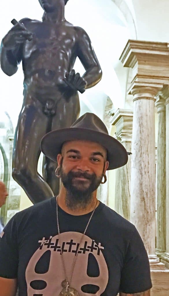 Our noble leader of Snap – always working – but really “working it” in those calypso ruffled pants (Seen at the Baltimore Museum of Art)