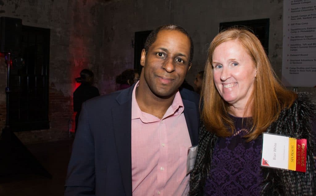 Pictured (LtoR) John Riehl IV, Baltimore-based real estate developer; and Abby Markoe, SquashWise executive director