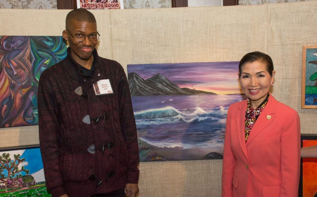 Pictured (LtoR) Kathleen Durkin, The Arc Baltimore executive director; Maria Hudak-Rosner, participating artist; Yumi Hogan, First Lady of Maryland; and Carol Beatty, Secretary of the Maryland Department of Disabilities