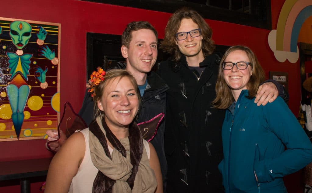 Pictured (LtoR) Theaux Le Gardeur, Gunpower River Keeper; Sean Fitzgerald McDaniel, Baltimore-based artist/graphic designer; Jen Berg, Baltimore-based personal assistant; and Gene Howson, Blackwater Angler Gunpowder River fishing guide