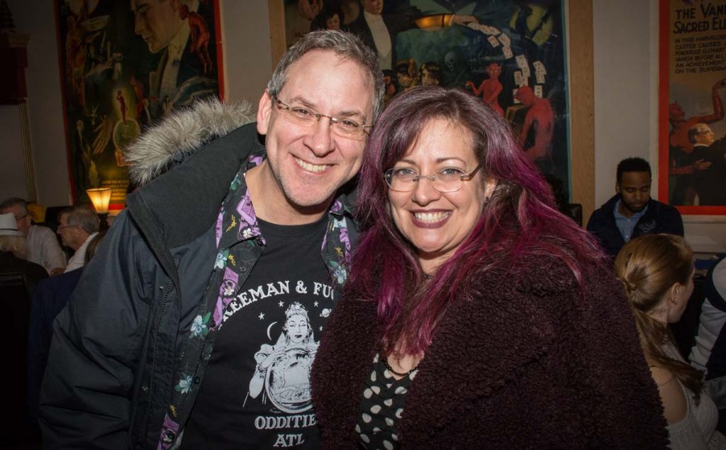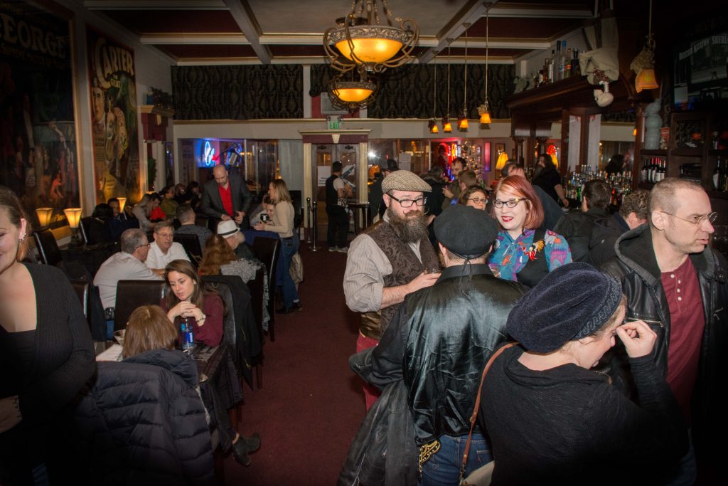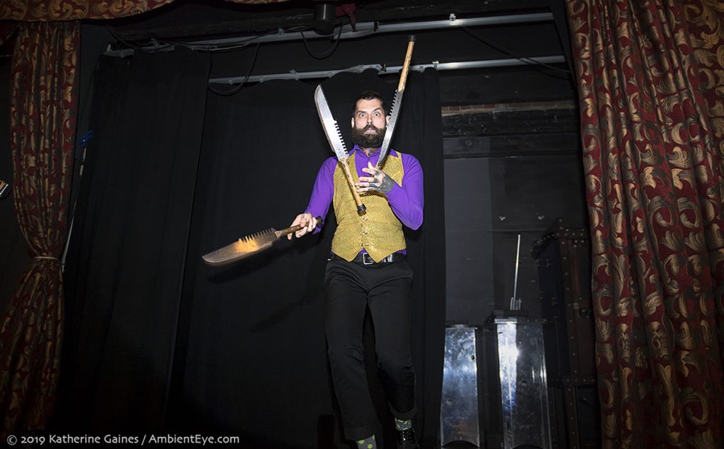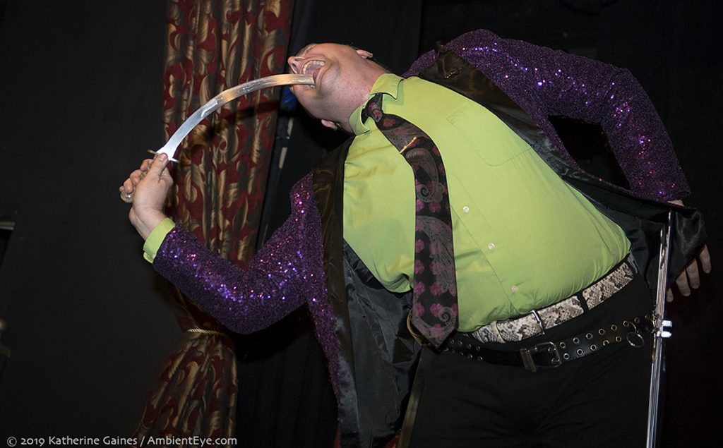 It began with a gathering in the Illusions Bar, where guests could catch up with friends and mingle with a myriad of sideshow artists. Pictured (LtoR) Spencer Horsman, Illusions Bar & Theater owner/featured entertainer; Alex Doll, The Atomic Doll Productions CEO/sideshow performer; and Caroline Gayle, Illusions Bar & Theater co-owner/magicianPictured (LtoR) Tommy “The Great Gozleone” Breen, swordswallower; and Lisa “Trinket” Oberg, Trinkets Costume & Sundry ownerPictured (LtoR) Greg Hatem and Brian Henry, Bazaar co-owners; and James Taylor, “Shocked and Amazed” publisherPictured (LtoR) Todd “Hot Todd Lincoln” Gardner, sideshow strongman/emcee; and David Olsher, Baltimore-based events coordinatorPictured (LtoR) Lacey McCann, higher education product manager; Stephon “Les S. Moore” Walker, stage pickpocket; Raymond “Dizzy Diamond” Diaz, impalement artist; and Katy “Trixie Turvy” Gunn, circus hula hooperPictured (LtoR) Jamie Horrell, Baltimore Shakespeare Factory music director; and Mena Lapasset, Thermo Fisher Scientific lab technicianPictured (LtoR) Matt Griller, Chicago-based videographer; “Kyle Danger” Hopkins, Northern Virginia-based artist; and Sarah Griller, DC-based human resources manager Then, it was into the Illusions theater for the “World of Wonders Sideshow with Spencer Horsman & Caroline Gayle.” (Photo by Katherine Gaines / AmbientEye.com)(Photo by Katherine Gaines / AmbientEye.com)(Photo by Katherine Gaines / AmbientEye.com)(Photo by Katherine Gaines / AmbientEye.com) (January 2, 2019 – Illusions Bar and Theater)
