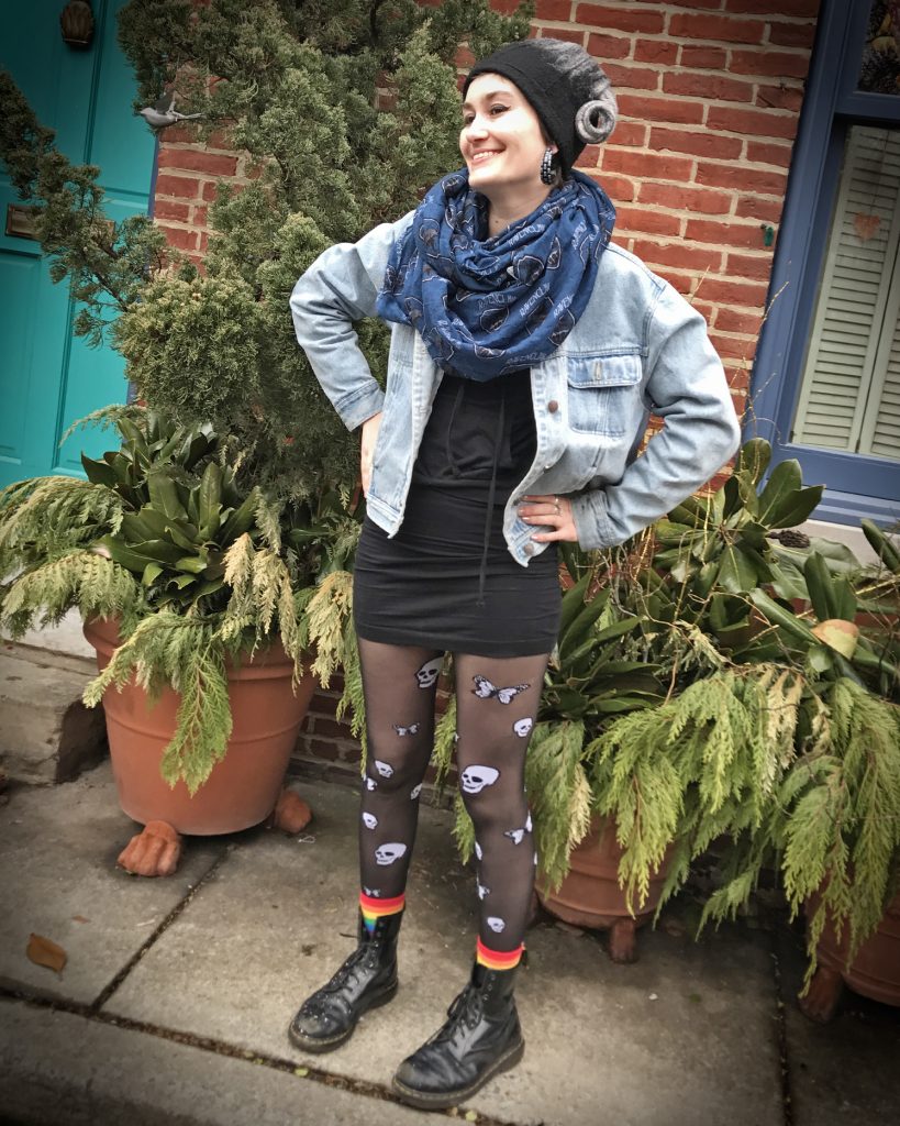 “Life’s true face is the skull” – Nikos Kazantzakis. Clearly, she is putting her best face forward! (Snapped on Bethel St.)