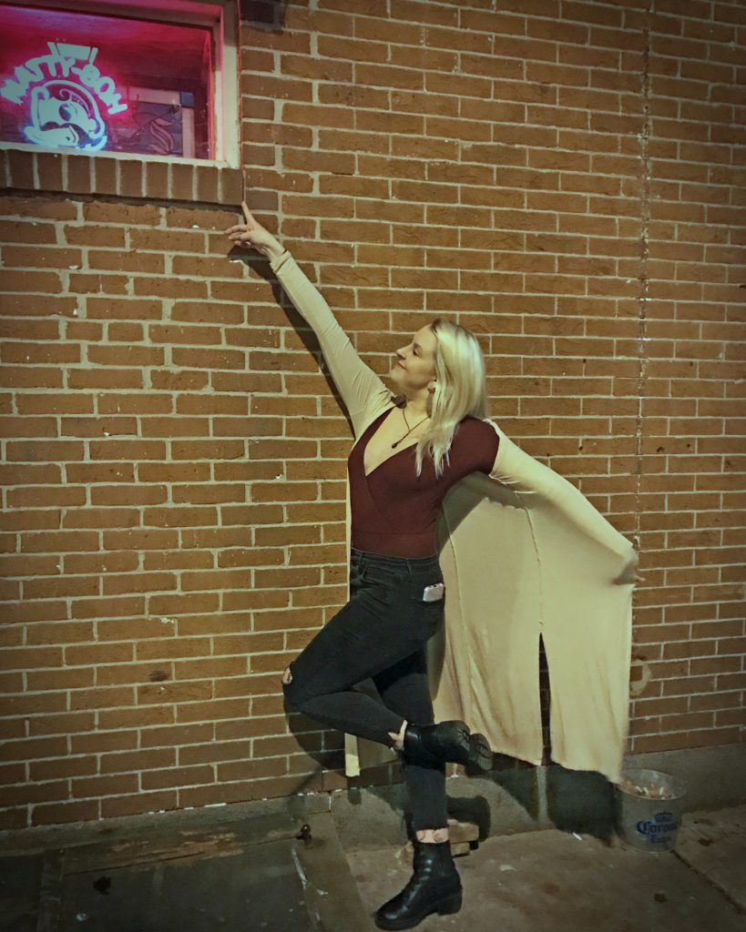 Swathed in baby pink, dancing by the light of the moon…with a little help of the Natty Boh guy (Snapped on Bond St.)