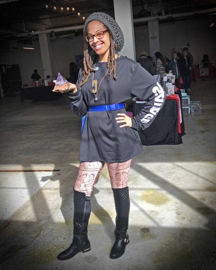 With pyramid in hand and hieroglyphic tights, a touch of Egypt in Baltimore. (Snapped at R. House, Hampden)