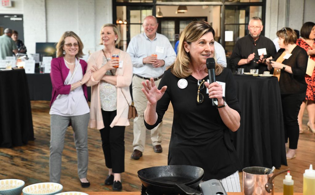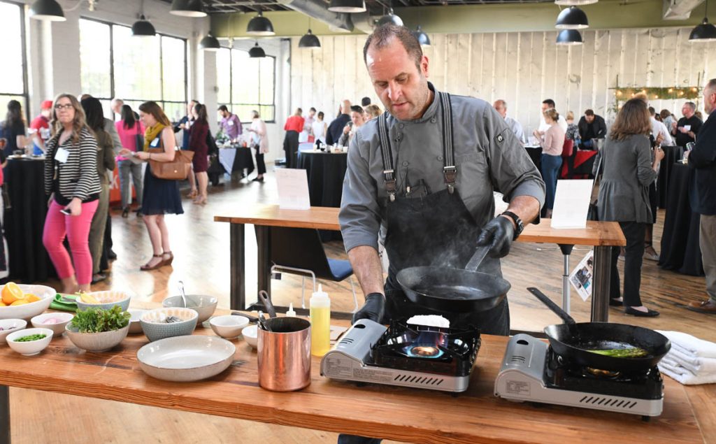 Celebrity chef/event judge Kevin Miller performing a cooking demonstration for attendees
