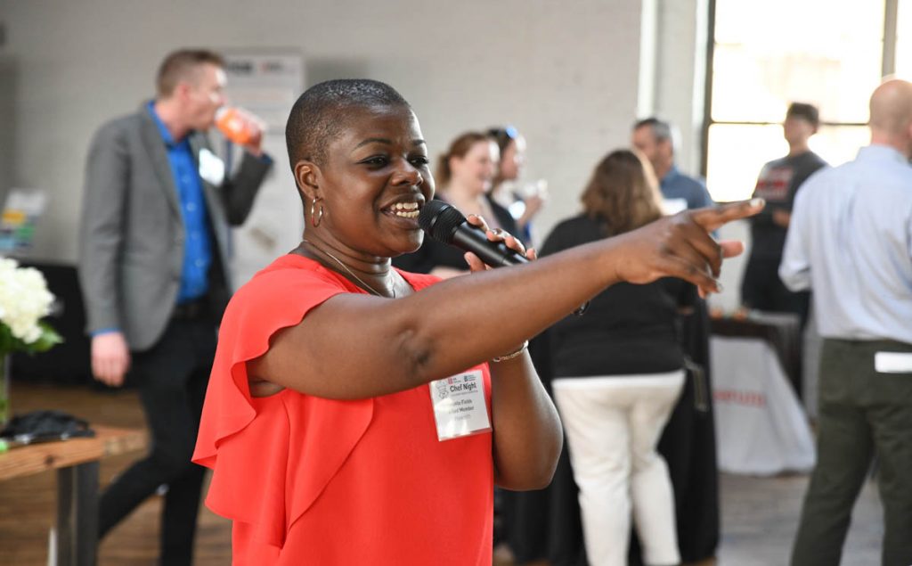 Shante Fields, Haworth, during the live auction (April 23, 2019 – B-More Kitchen) Photos & captions courtesy John Coyle, Coyle Studios LLC, AIA Baltimore & BAF