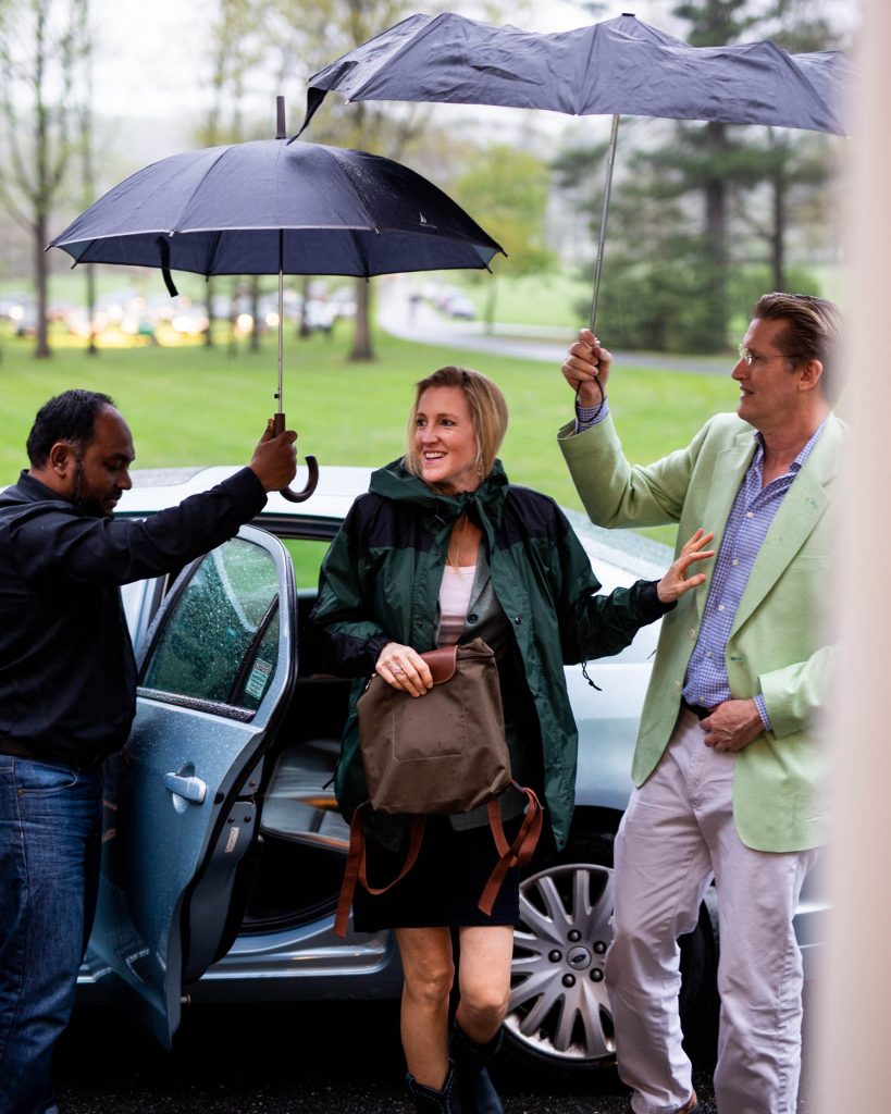 Guests were greeted with gobs of umbrellas as they arrived at Oakdene, the home of party hosts Justin and Jeremy Batoff.