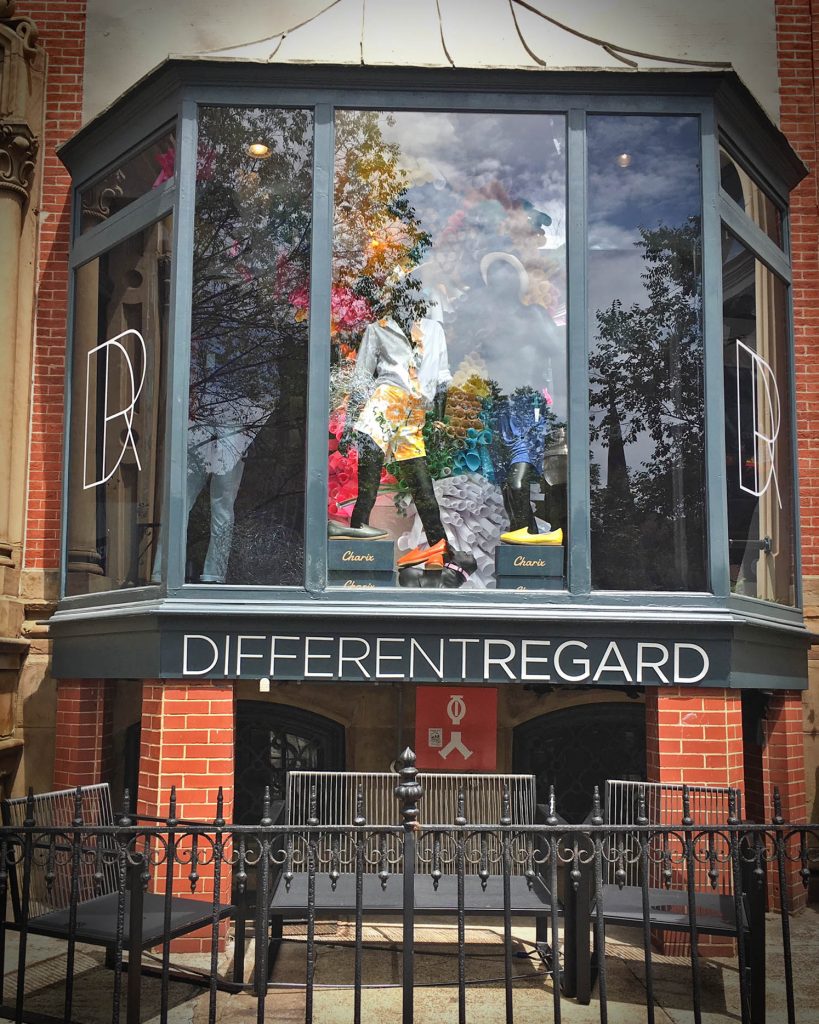 FOUND – I was walking to lunch and spotted a new store in Mt Vernon called DifferentRegard, at 825 N. Charles Street. The window display had some eye-catching ensembles with bright colors and interesting tailored lines for both men and women.