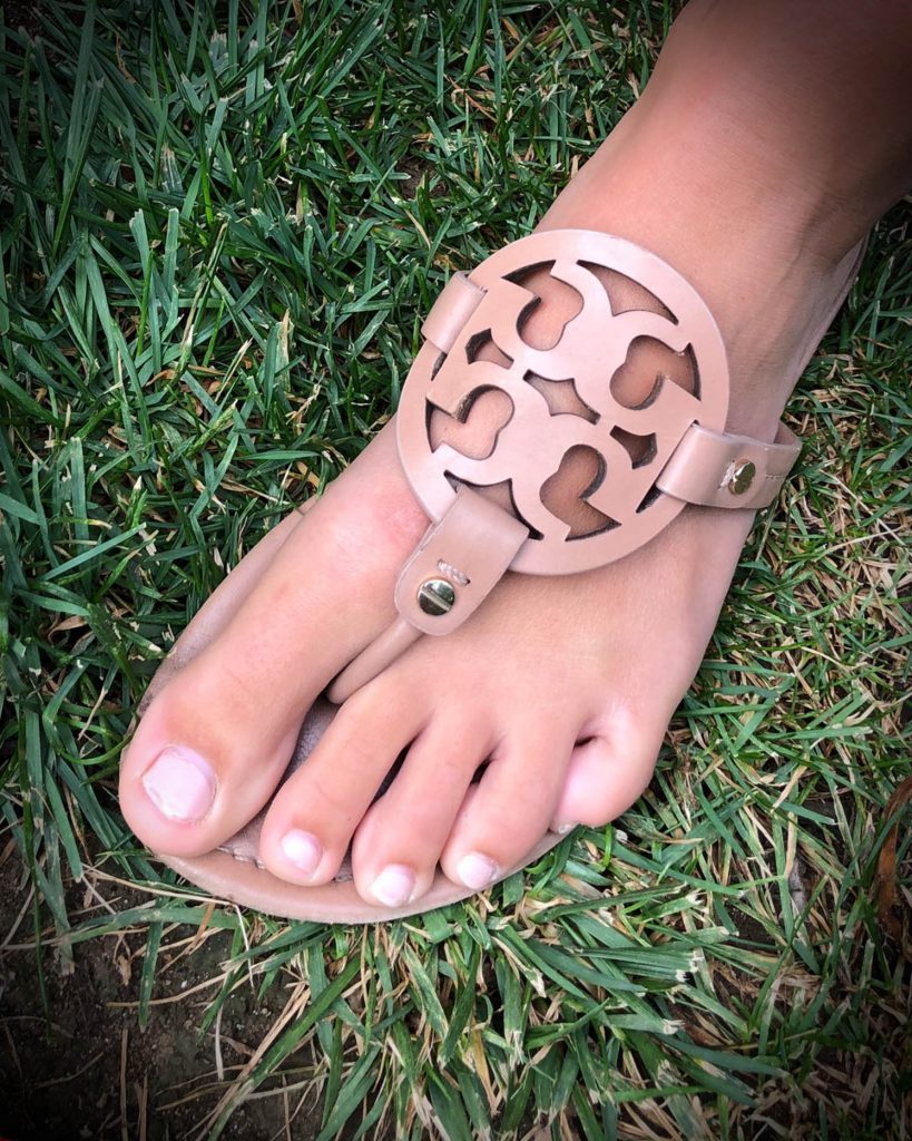 She’s also paired it with Tory Burch flip flops – the perfect shoe for summertime! These pair great with rompers, wraps, and even jeans. Overall, her look is adorable! The bright colors and unique design of the dress grabs your attention. It’s a look that’s great for the office but could easily transition into a summer happy hour out on the patio.