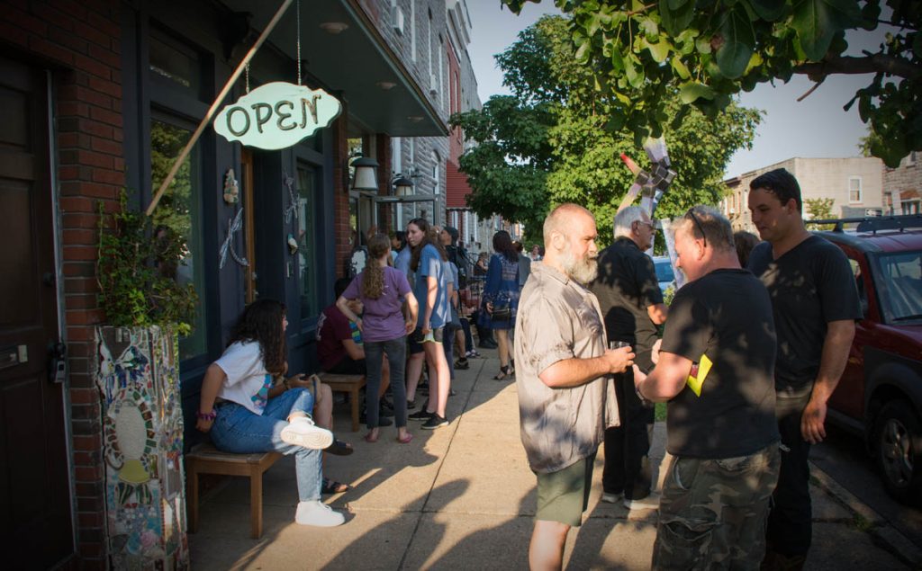 A SUPER night at the Y:ART Gallery…befitting the “SUPERHEROES” exhibition opening being celebrated. Scores of folks crammed the Highlandtown gallery to get first look at how dozens of local artists rendered their interpretations of what makes a superhero.