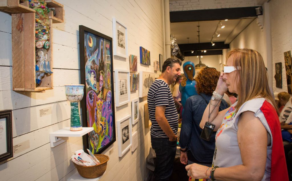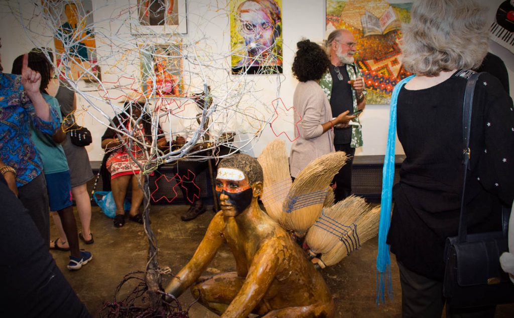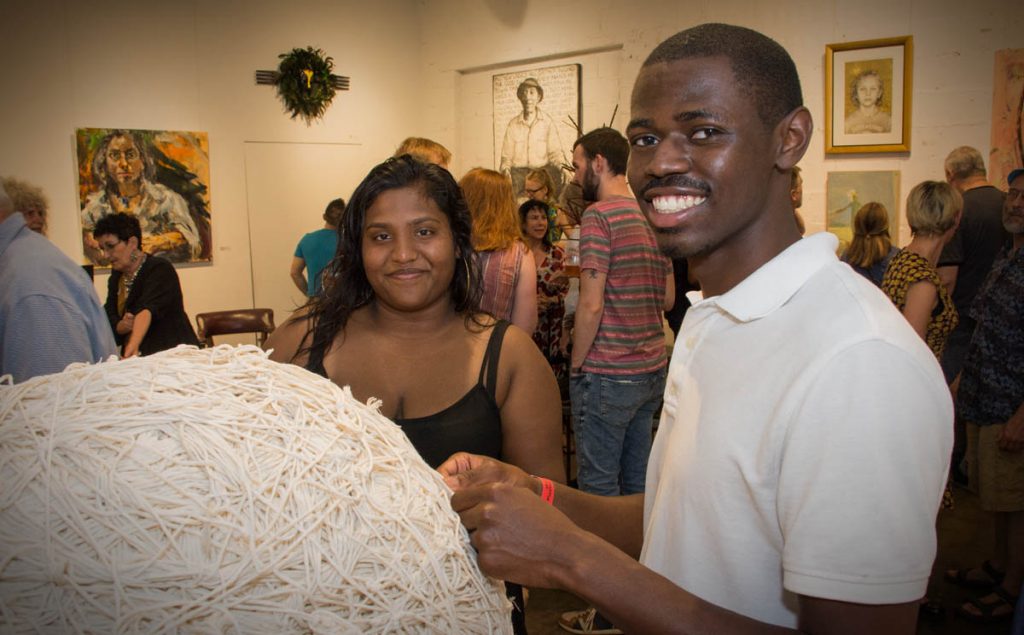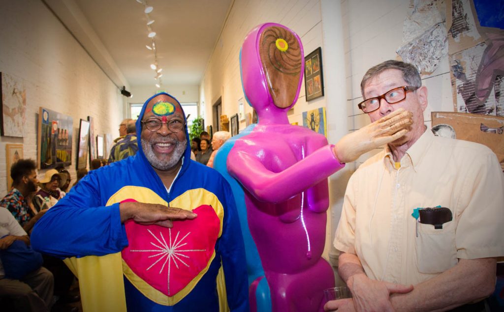 Pictured (LtoR) Junius Wilson, show artist, next to his work, “Wo-Man”; and David Ettlin, writer/editor/blogger