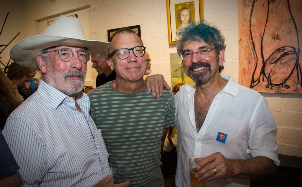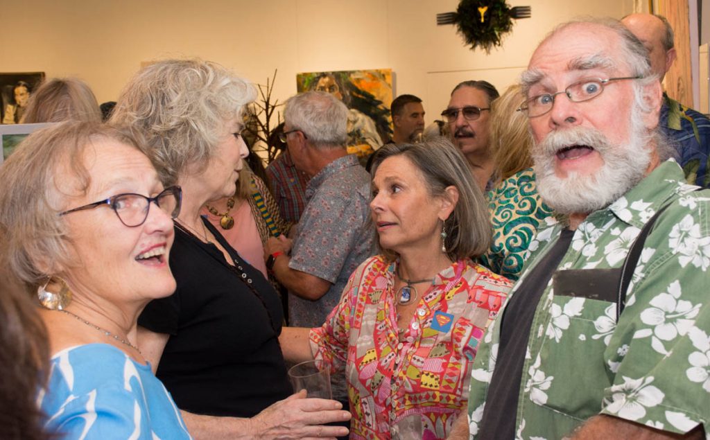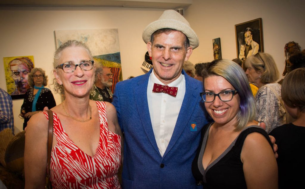 Y:ART Gallery owner Juli Yensho (center right) greeting friends: Megin Diamond, jeweler (far left); Sydney Hopkins, painter (center left) and James Leonard, sculptor (far right)