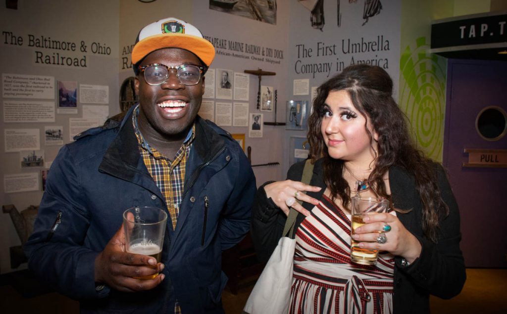 Pictured (LtoR) Phineas Cobbina, Pour of Baltimore craft beer blogger; and Gabriela Antonas, Sew Lab USA marketing/social media manager