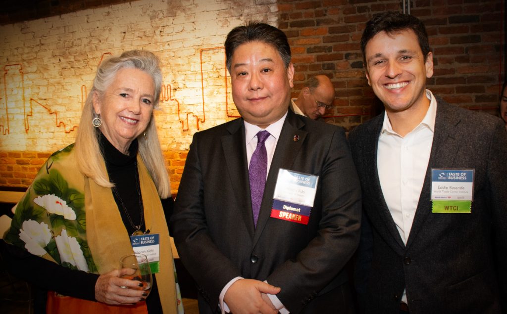 Pictured (LtoR) Deborah Kielty, WTCI executive chair/advisor to the CEO’s; Shinichi IIDA, Embassy of Japan in the USA minister/head of economic development; and Eddie Resende, WTCI Co-CEO